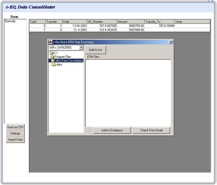 This logistics company did not want to add a server. The e-Form can be submitted via email. It is the basic feature of the software (Figure 2). Clients can download the special software e-Biz Filler free of charge for filling in data and submitting data (Figure 3). Moreover, the company can buy a Data Consolidator (Figure 4) to collect the data, to analyse or export. Applying this small change, it is error free and eliminated re-typing. It improves working efficiency. Normally handled by 3 staff now can be handled by one person. The excessive manpower can be deployed for other tasks. Resources value added is achieved. This solution is only cost you a few thousand dollars. It is so flexible and scalable that you can decide to add other forms and become a Form Flow System step-by-step whenever suitable. This is the road to business automation and paperless operations.
