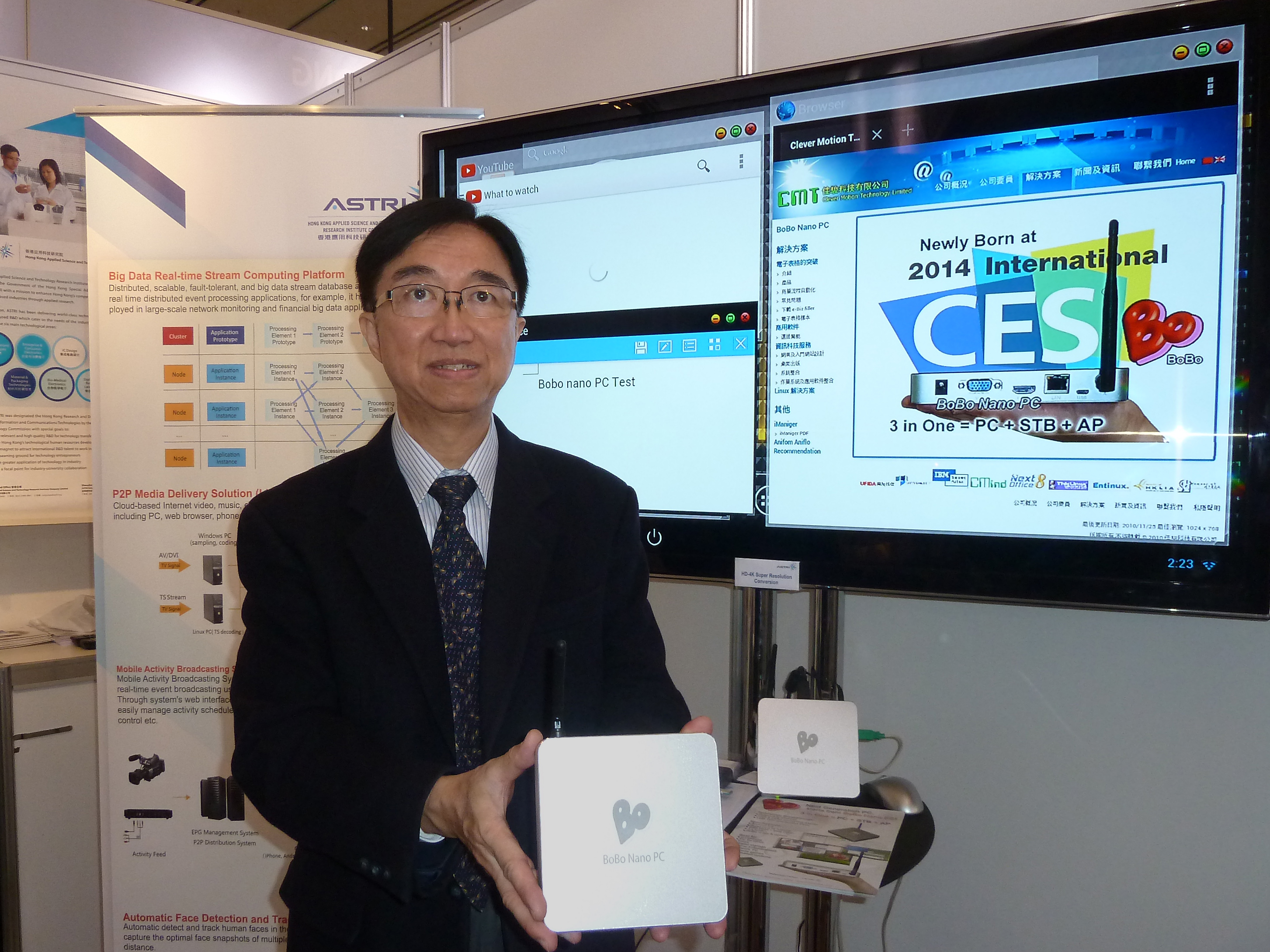 生活科技應用 (Life Application) 創新電子產品設計及解決方案供應商佳駿科技有限公司 (Clever Motion Technology Limited),伙拍香港應用科技研究院,首次亮相國際消費電子展 (CES 2014) ,向來自世界各地的買家展示寶寶超微電腦 (以下簡稱寶寶) 。寶寶是針對雲端運算用戶終端市場全新設計的安卓 (Android) 個人電腦,擁有多項突破和創新技術。